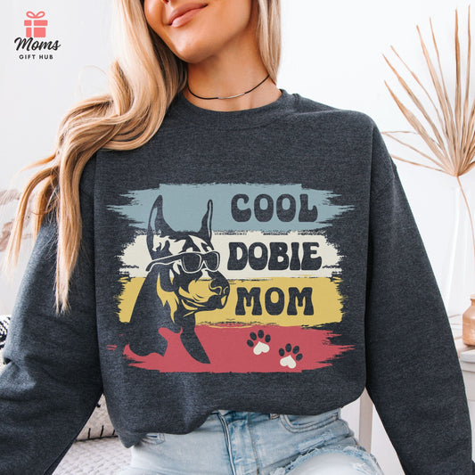 Cool Dobie Mom Sweatshirt - Retro Style Doberman Pinscher with Sunglasses Shirt for Dog Lover and Pet Owners